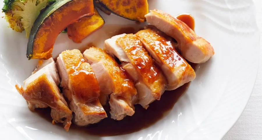 Das Hähnchen Teriyaki basiert auf dem japanischen Rezept für Teriyaki. Das Hähnchen wird in einer süßen Sojasauce-Marinade gegrillt. Die Gerichte enthalten normalerweise Hähnchenbrust mit Reis, bedeckt mit süß-saurer Teriyaki-Sauce.