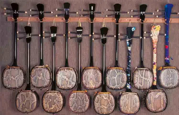 Es sieht aus wie ein Banjo mit drei Saiten; es wurde im 16. Jahrhundert aus China nach Japan gebracht. Im Vergleich zu Edo, dem heutigen Tokio, war es in den Vergnügungsvierteln von Edo beliebt und wurde häufig im Kabuki-Theater verwendet.