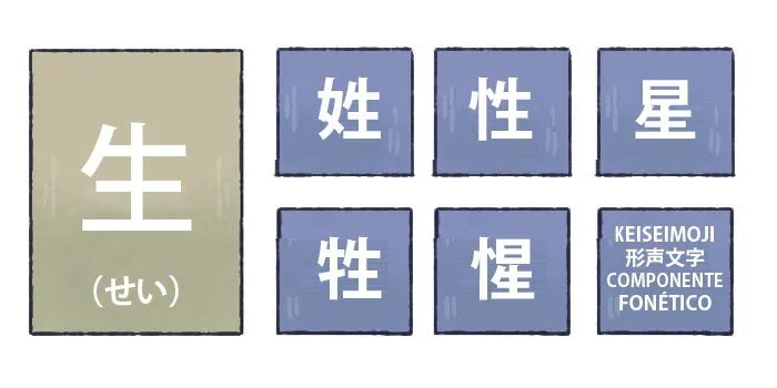 Did you know that in the Japanese language several ideograms can have the same pronunciation because of a small phonetic component within them? This component is called keiseimoji (形声文字) and is present in about 67% of Japanese ideograms. Knowing this phonetic component can help you understand and discover the reading of most Japanese ideograms.