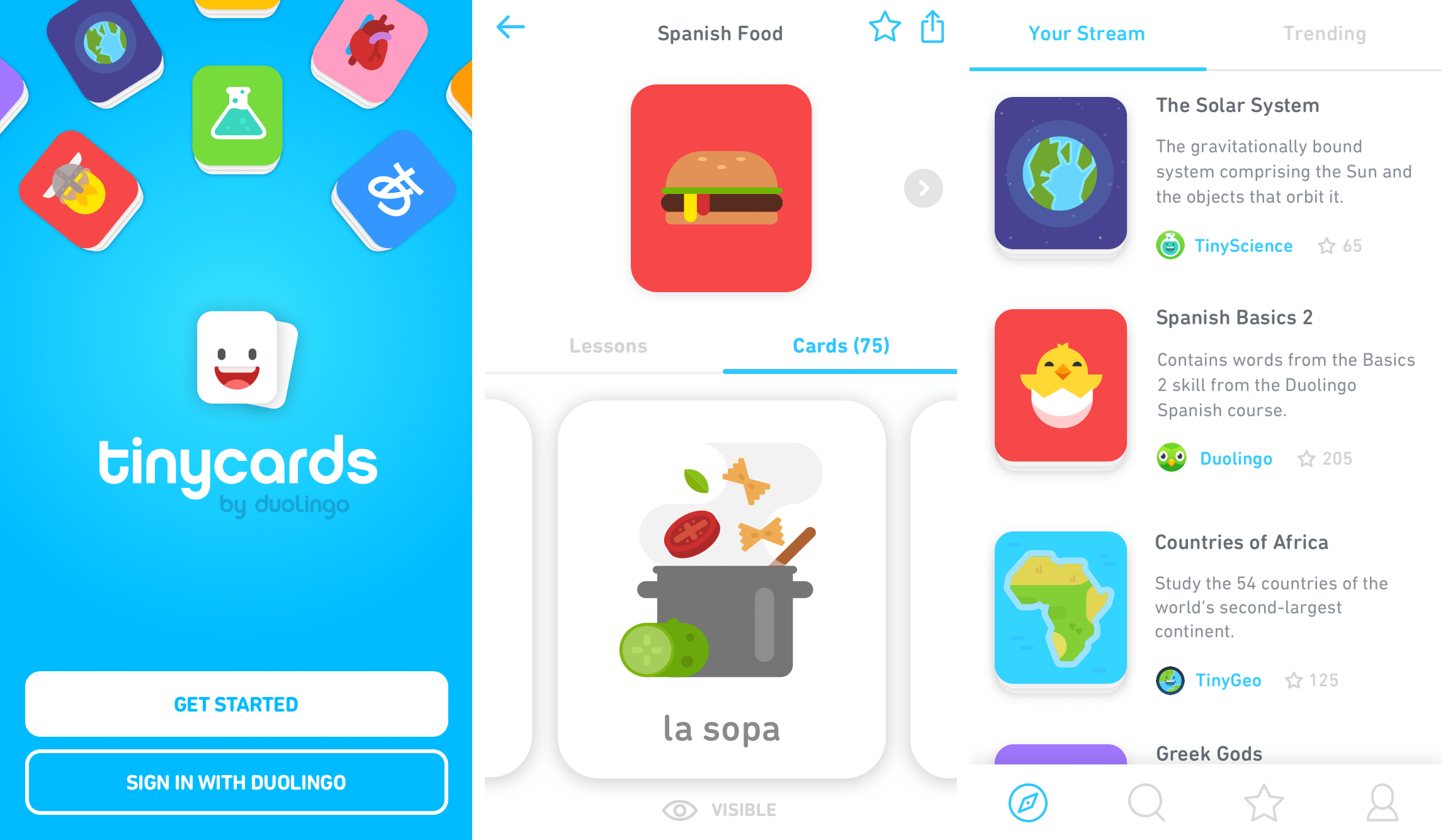 Tinycards est gratuit à utiliser et est disponible pour les appareils mobiles. Avec Tinycards, vous pouvez apprendre de manière amusante et efficace, et profiter de la qualité et de l’expertise de Duolingo.