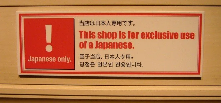 Ada beberapa tempat di Jepang yang mungkin akan Anda temui dengan tanda tertulis: “Hanya Orang Jepang” atau semacamnya. Jangan khawatir karena itu sangat sangat jarang, tapi jika ada yang melihatnya, pasti sudah tersebar di internet.